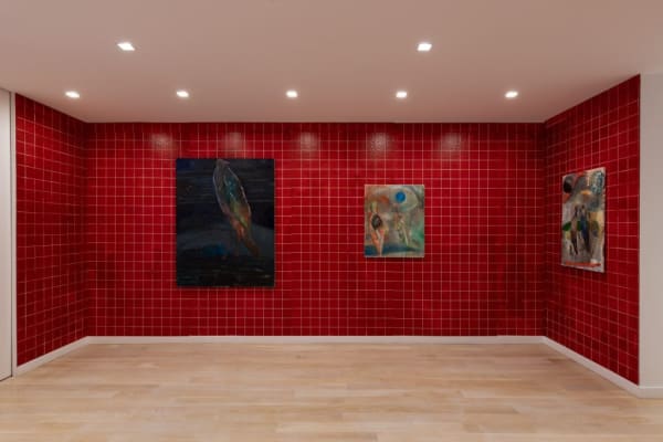Brightly colored, large-scale paintings by Volker Hüller on view at Van Doren Waxter