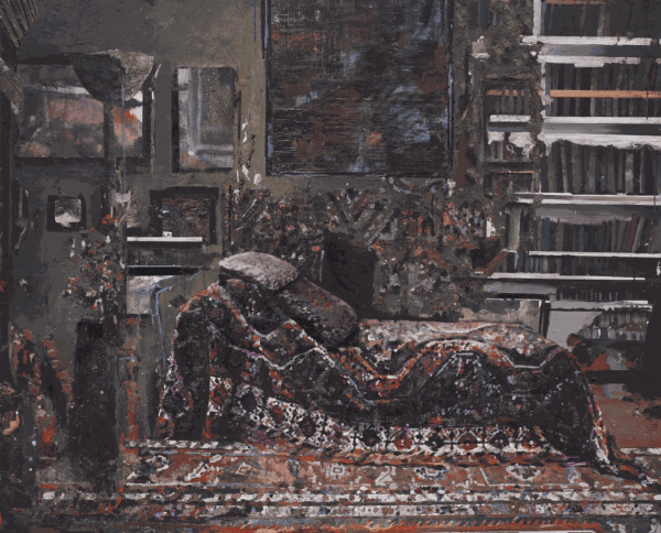 Tjebbe Beekman’s canvases are simultaneously abstract and expressive, disorienting the viewer’s sense of space. Layering increasingly fragmented and polarised images, Beekman’s work is a personal reflection of contemporary society and his method of adapting to the existential events of today through creating a dialogue with his contemporaries of the past.