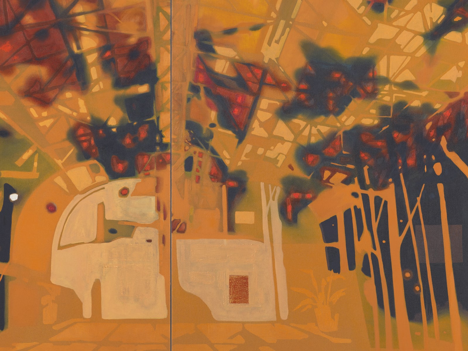 TBC (Ams show), 2025Acrylic, oil, oil stick and pigment on linen, diptych130 x 320 cm | 51 1/8 x 126 in (overall)Further images