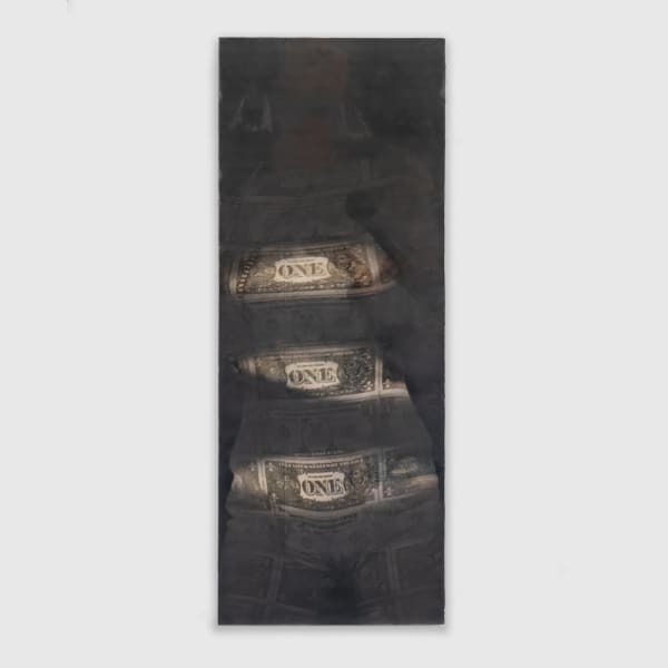 Starland silver sash examines pleasure, performance, and the mechanics of a good time. The artist asks: What’s a good time, who’s a good time, and for whom is the good time? The paintings unfold like film, stitched from cropped images, some with interruptions of black paint that act as censors, pauses, veils. Not all obstructions are permanent; in thermally sensitive works, the black temporarily turns transparent, revealing what lies beneath. The series explores how women are held in a constant loop of being seen and seeing themselves, flickering between intimacy and spectacle.