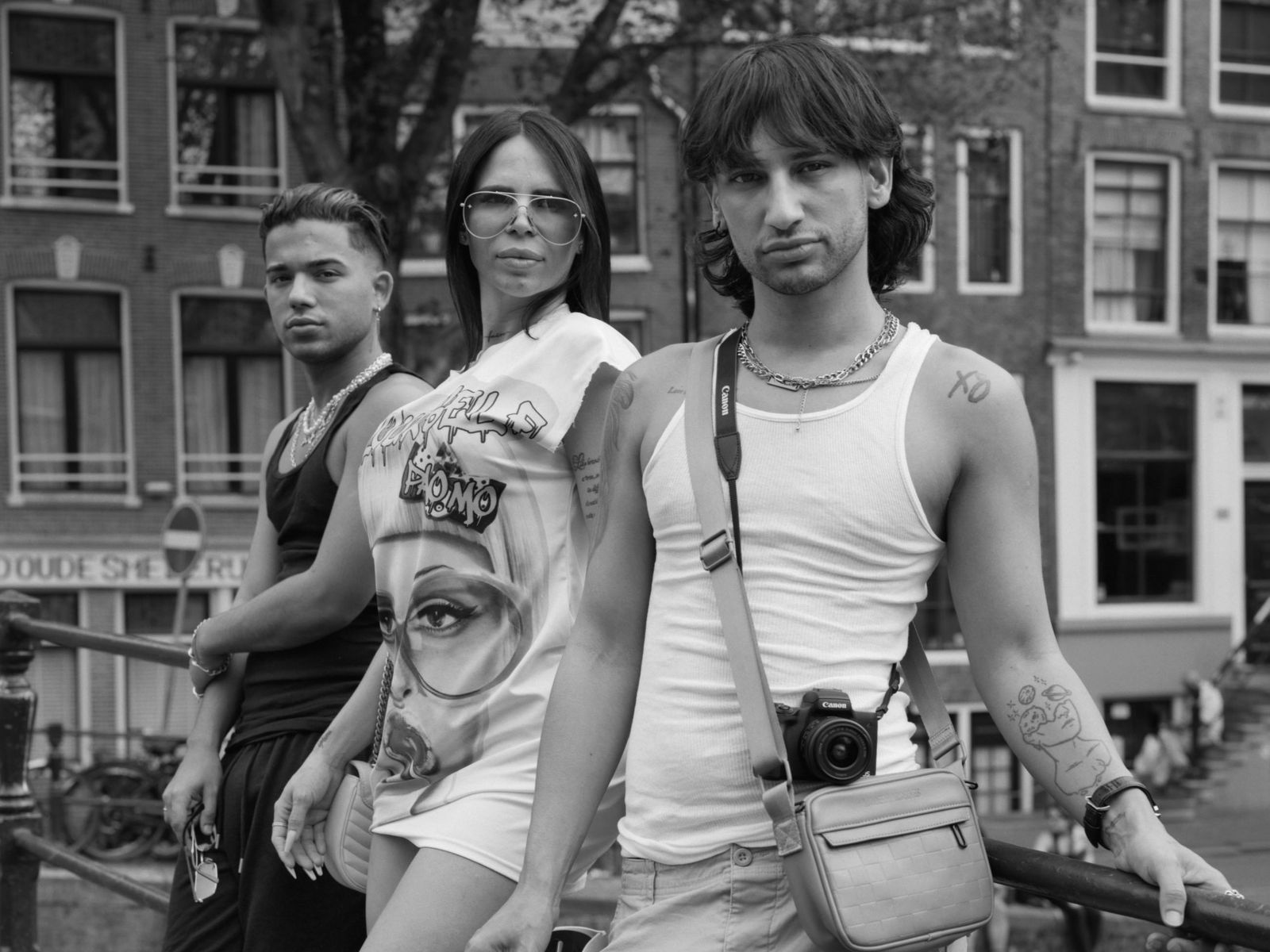 Dana LixenbergJoe, Jesse and Alex, Oudekerksbrug, 2022, 2025Gelatin Silver print mounted on aluminum, maple frame, museum glassPrint size: 100 x 78.8 cm | 39 3/8 x 30 3/4 in